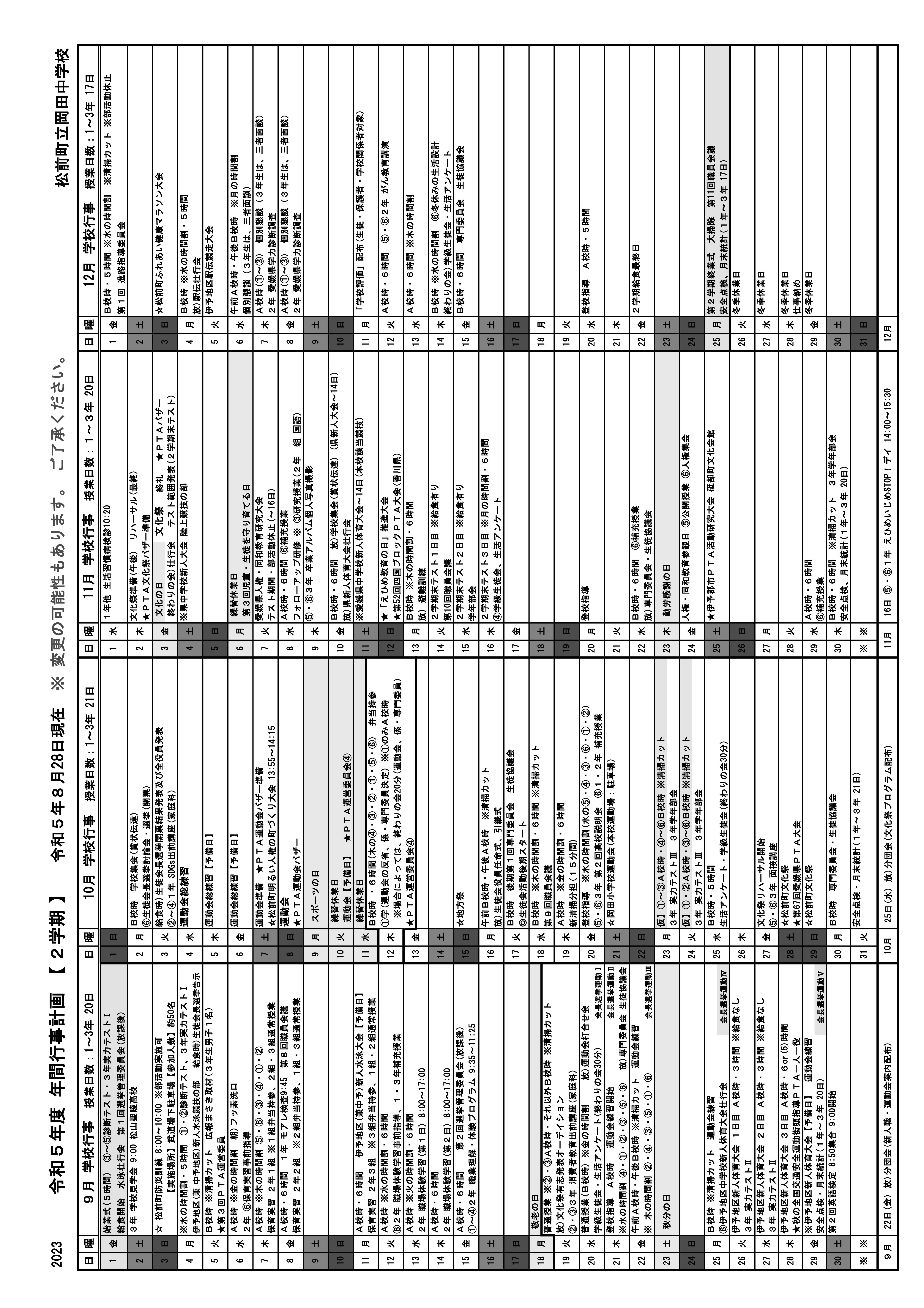 2学期の行事予定について 2023-08-28 [HP管理者]